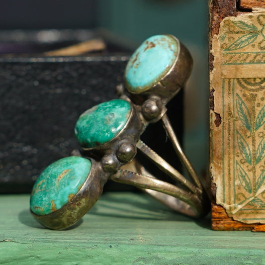 Vintage Navajo Cerrillos Turquoise Stop Light Ring