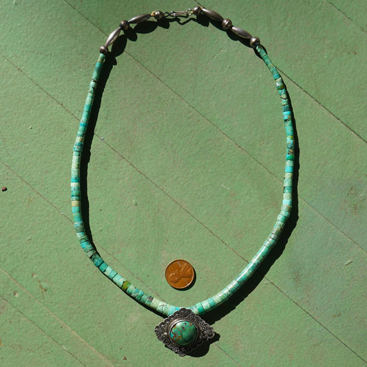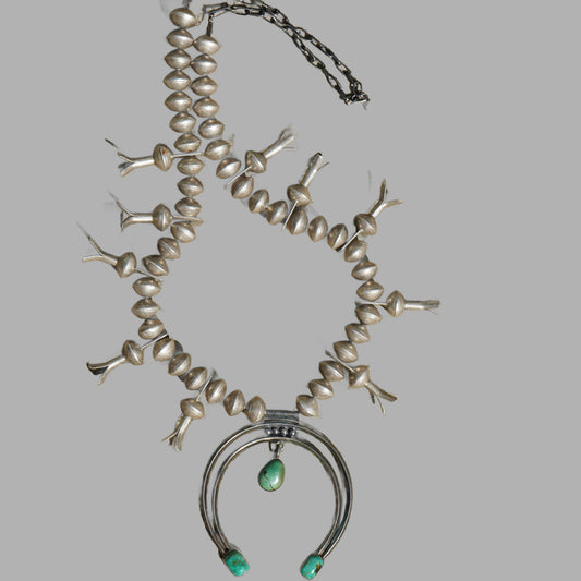 Vintage Zuni Turquoise Squash Blossom Necklace